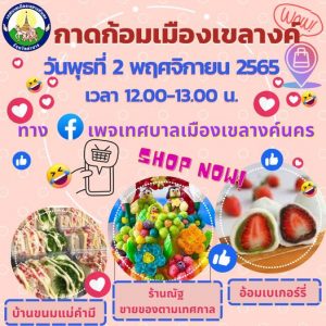 วันพุธที่ 2 พฤศจิกายน 2565 เวลา 12.00 น. เทศบาลเมืองเขลางค์นคร จัดกิจกรรมการส่งเสริมช่องทางการจำหน่ายสินค้าแก่กลุ่มอาชีพและผู้ประกอบการในเขตเทศบาลเมืองเขลางค์นคร โดยเป็นการจำหน่ายสินค้าออนไลน์ผ่านทางเพจเทศบาลเมืองเขลางค์นคร (กาดก้อมเมืองเขลางค์) อาทิเช่น
