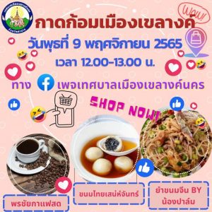 วันพุธที่ 9 พฤศจิกายน 2565 เวลา 12.00 น. เทศบาลเมืองเขลางค์นคร จัดกิจกรรมการส่งเสริมช่องทางการจำหน่ายสินค้าแก่กลุ่มอาชีพและผู้ประกอบการในเขตเทศบาลเมืองเขลางค์นคร โดยเป็นการจำหน่ายสินค้าออนไลน์ผ่านทางเพจเทศบาลเมืองเขลางค์นคร (กาดก้อมเมืองเขลางค์) อาทิเช่น