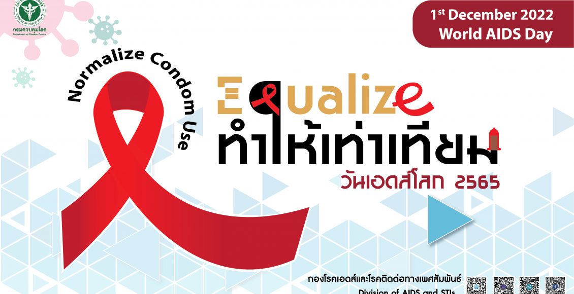 >>> วันที่ 30 พฤศจิกายน 2565 นายแพทย์ธเรศ กรัษนัยรวิวงค์ อธิบดีกรมควบคุมโรค กล่าวว่า ในวันที่ 1 ธันวาคม ของทุกปี องค์การอนามัยโลกกำหนดเป็น “วันเอดส์โลก” (World AIDS Day) เพื่อสร้างความตระหนักถึงความสำคัญของการป้องกันโรคเอดส์ การยอมรับ และเข้าใจผู้ติดเชื้อเอชไอวีทั่วโลก โดยใช้โบว์แดงเป็นสัญลักษณ์สากล ที่แสดงถึงการตระหนักรู้ การสนับสนุนและความเป็นน้ำหนึ่งใจเดียวกันกับผู้ติดเชื้อเอชไอวี อีกทั้งยังเป็นการย้ำเตือนว่า เอชไอวี/เอดส์ยังคงอยู่ และปี 2565 นี้ UNAIDS ชูประเด็นรณรงค์ คือ “Equalize: ทำให้เท่าเทียม”