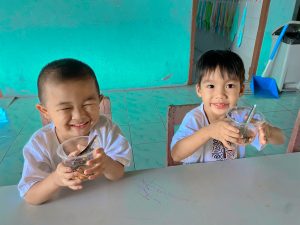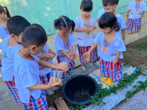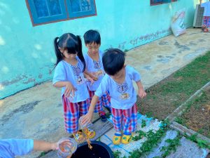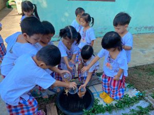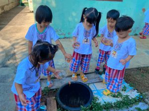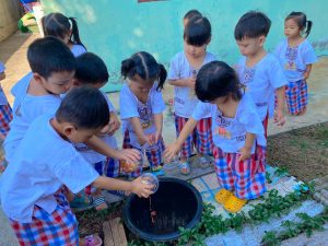 อีกทั้งยังนำเศษอาหารที่เหลือจากการทำกิจกรรม เทลงถังขยะเปียกหรือขยะอินทรีย์ในโครงการถังขยะเปียก ลดโลกร้อน
