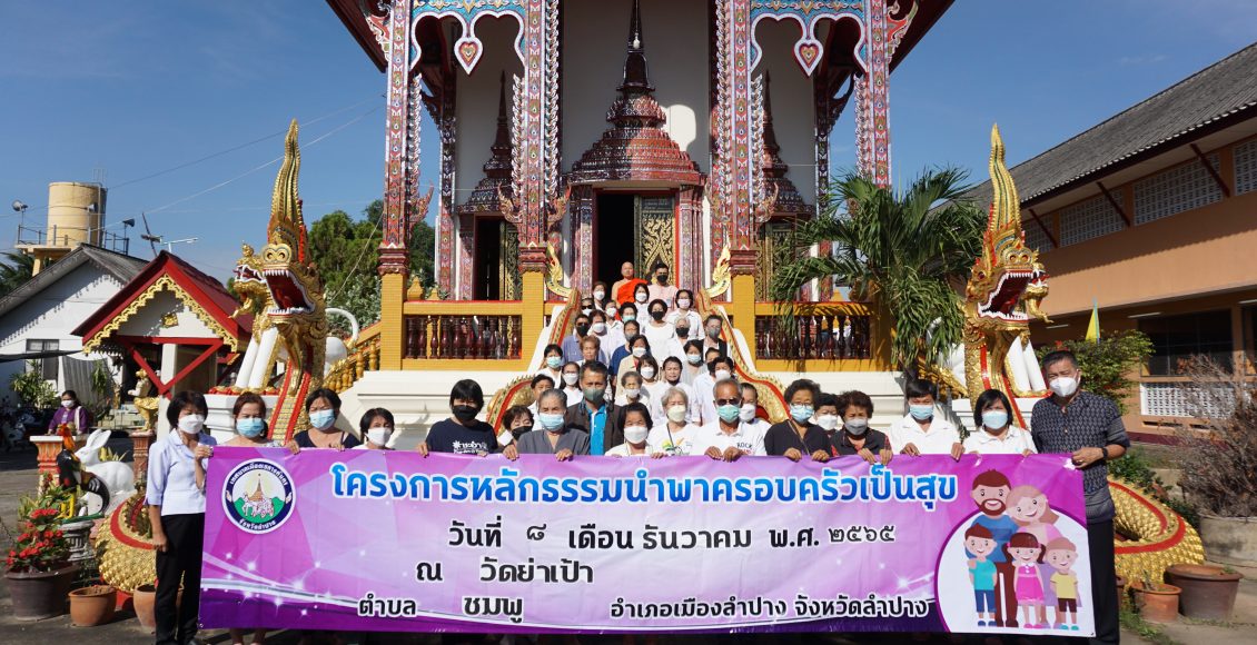 เมื่อวันที่ 8 ธันวาคม 2565 นายไพฑูรย์ โพธิ์ทอง นายกเทศมนตรีเมืองเขลางค์นคร ได้มอบหมายให้ นายนคร โยธาวงศ์ รองนายกเทศมนตรีเมืองเขลางค์นคร เป็นประธานในพิธีเปิดการอบรมโครงการหลักธรรมนำพาครอบครัวเป็นสุข ณ วัดย่าเป้า โดยมีพระปลัด ดร. ชัยภัทร ขฺนติธโร เจ้าอาวาสวัดศรีปงชัย เป็นวิทยากรในการบรรยายให้ความรู้ เรื่อง “คุณธรรมและจริยธรรมในครอบครัว”