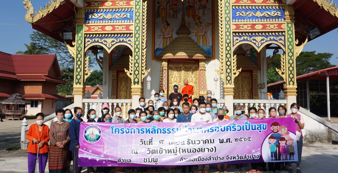 เมื่อวันที่ 9 ธันวาคม 2565 นายไพฑูรย์ โพธิ์ทอง นายกเทศมนตรีเมืองเขลางค์นคร ได้มอบหมายให้ นายนคร โยธาวงศ์ รองนายกเทศมนตรีเมืองเขลางค์นคร เป็นประธานในพิธีเปิดการอบรมโครงการหลักธรรมนำพาครอบครัวเป็นสุข ณ วัดเข้าหมู่ (หนองยาง) โดยมีพระปลัด ดร. ชัยภัทร ขฺนติธโร เจ้าอาวาสวัดศรีปงชัย เป็นวิทยากรในการบรรยายให้ความรู้ เรื่อง “คุณธรรมและจริยธรรมในครอบครัว”