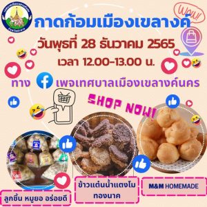 วันพุธที่ 28 ธันวาคม 2565 เวลา 12.00 น. เทศบาลเมืองเขลางค์นคร จัดกิจกรรมการส่งเสริมช่องทางการจำหน่ายสินค้าแก่กลุ่มอาชีพและผู้ประกอบการในเขตเทศบาลเมืองเขลางค์นคร โดยเป็นการจำหน่ายสินค้าออนไลน์ผ่านทางเพจเทศบาลเมืองเขลางค์นคร (กาดก้อมเมืองเขลางค์) อาทิเช่น