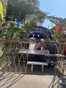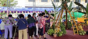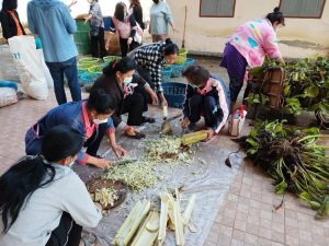 – กลุ่มสตรีร่วมกันทำไม้ค้ำสะหลี และจัดเตรียมดอกไม้เพื่อใช้ในงานทำบุญขึ้นปีใหม่