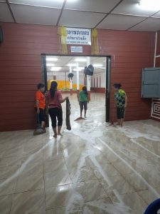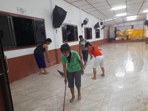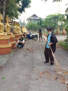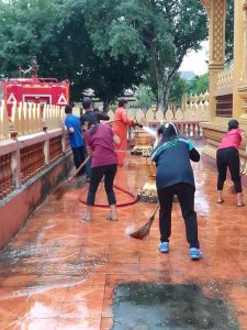 11. กลุ่มสตรีชุมชนบ้านร้อง ช่วยกันทำความสะอาดวัด