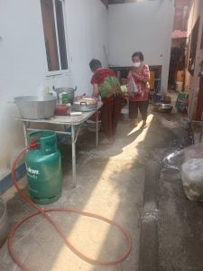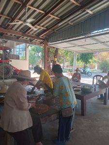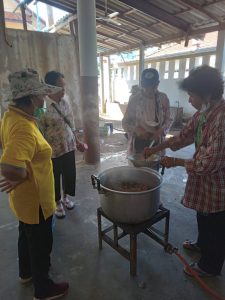 – กลุ่มสตรีทำอาหารเลี้ยงพระและชาวบ้านเนื่องในงานทำบุญในชุมชน