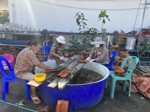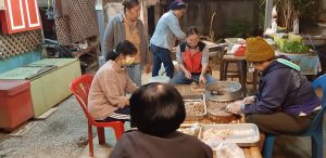 – กลุ่มสตรีร่วมกันจัดทำอาหารว่างเพื่อแจกในงานฌาปนกิจ