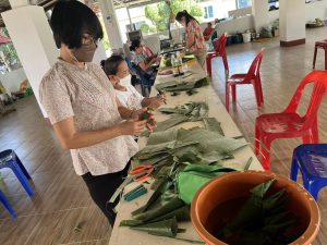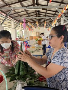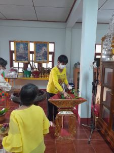 1. กลุ่มสตรีชุมชนบ้านปงแสนทอง ร่วมกันทำเครื่องสักการะ ณ วัดปงแสนทอง
