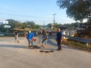 3. กลุ่มสตรีชุมชนบ้านศรีหมวดเกล้า1 ร่วมกับกลุ่มอสม. และคณะกรรมการชุมชนทำความสะอาดบริเวณทางเข้าหมู่บ้าน
