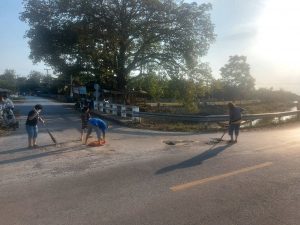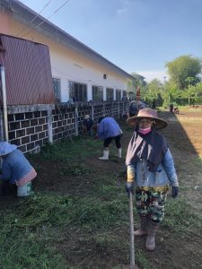 – กลุ่มสตรีร่วมกันทำความสะอาดบริเวณชุมชน