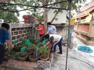 – กลุ่มสตรีร่วมกิจกรรมปลูกพืช ผัก สวนครัว ณ วัดแม่กืย