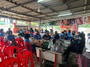 – กลุ่มสตรีร่วมกับคณะกรรมการชุมชน และกลุ่มผู้สูงอายุปรึกษาหารือในการประชุมใหญ่ของชุมชน