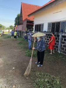 8. กลุ่มสตรีชุมชนบ้านแม่กืย ร่วมกับกลุ่มผู้สูงอายุและคณะกรรมการชุมชนทำความสะอาดบริเวณวัด