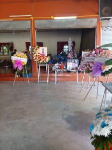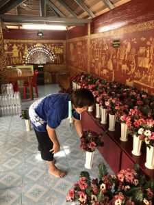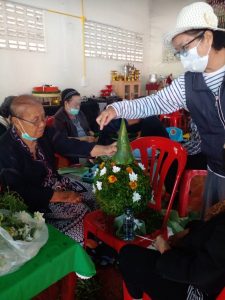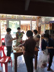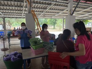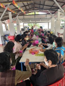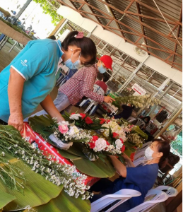 – กลุ่มสตรีร่วมกับกลุ่มผู้สูงอายุตกแต่งดอกไม้ในงานฌาปนกิจ