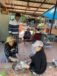 4. กลุ่มสตรีชุมชนบ้านกาดเมฆตะวันตก ร่วมกันเตรียมของในงานศิษย์เก่าสานสัมพันธ์โรงเรียนบ้านกาดเมฆเพื่อหารายได้จัดจ้างครูผู้สอนให้กับทางโรงเรียน