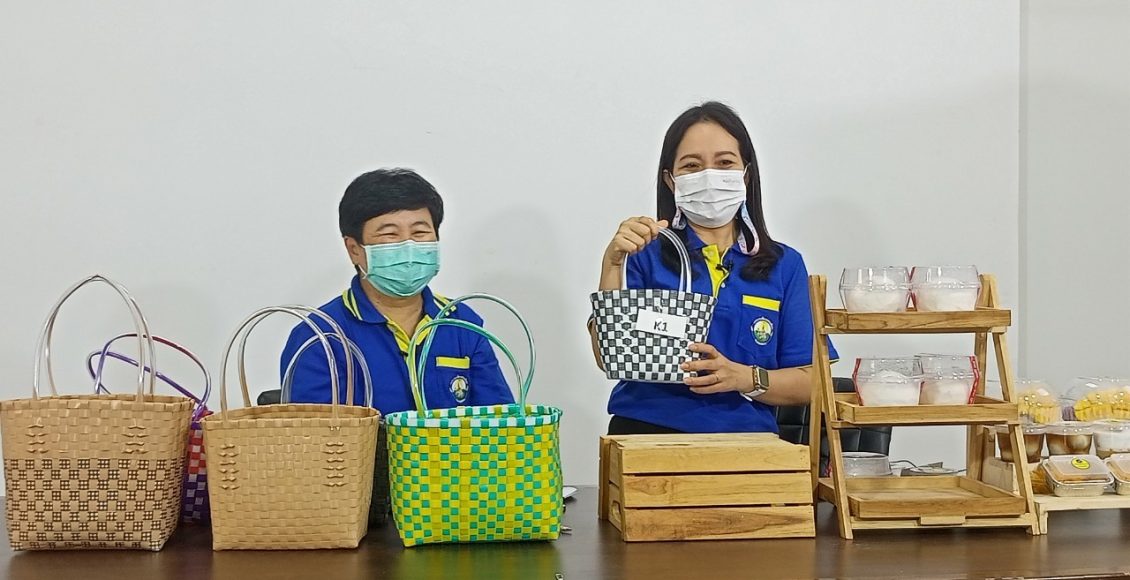 1. ผลิตภัณฑ์กระเป๋าจักสานจากเส้นพลาสติกชุมชนบ้านป่าตันกุมเมือง