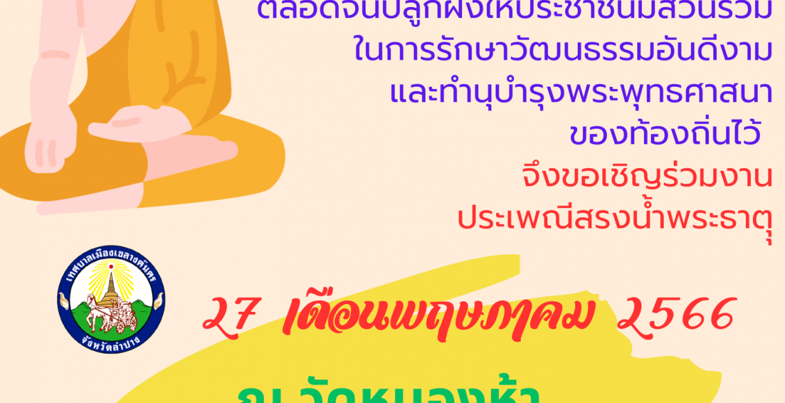 ขอเชิญชวนร่วมประเพณีสรงน้ำพระธาตุของชุมชนในเขตเทศบาลเมืองเขลางค์นคร ประจำเดือนพฤษภาคม 2566