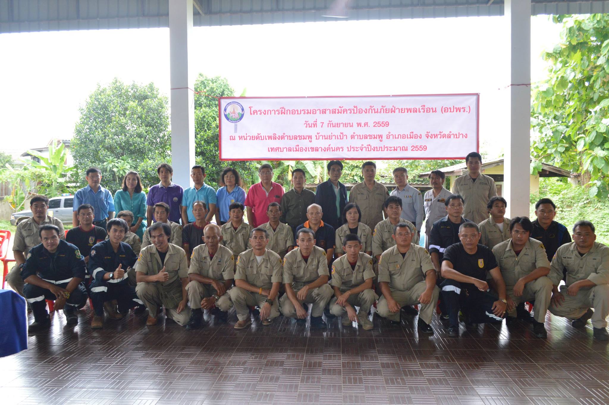 วันที่ 7 กันยายน 2559 เวลา 09.30 น.นายไพฑูรย์ โพธิ์ทอง นายกเทศมนตรีเมืองเขลางค์นคร เป็นประธานในพิธีเปิด “โครงการฝึกอบรมอาสาสมัครฝ่ายพลเรือน (อปพร.)เทศบาลเมืองเขลางค์นคร ประจำปี 2559” โดยมีคณะผู้บริหาร และหัวหน้าส่วนราชการ ร่วมเป็นเกียรติในพิธีเปิด ณ หน่วยดับเพลิงตำบลชมพู ชุมชนบ้านย่าเป้า ตำบลชมพู อำเภอเมือง จังหวัดลำปาง ซึ่งได้รับเกียรติจาก นายบุญเจต บุตติ นายช่างเครื่องกลชำนาญงาน ปฏิบัติหน้าที่ ผู้ช่วยหัวหน้าฝ่ายป้องกันและปฏิบัติการ สำนักงานป้องกันและบรรเทาสาธารณภัย จังหวัดลำปาง และนายจตุรงค์ ศิริรัตน์ ครูฝึกป้องกันและบรรเทาสาธารณภัย เทศบาลนครลำปาง ร่วมให้ความรู้และฝึกการปฏิบัติการป้องกันและระงับเหตุ เพื่อให้ อปพร.เทศบาลเมืองเขลางค์นครมีความรู้ ความชำนาญการและทักษะในการป้องกันและบรรเทา สาธารณภัย เพื่อให้ช่วยเหลือประชาชนในเขตพื้นที่ให้ได้รับความปลอดภัยในชีวิตและทรัพย์สินต่อไป