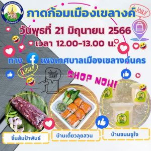 วันพุธที่ 21 มิถุนายน 2566 เวลา 12.00 น. เทศบาลเมืองเขลางค์นคร จัดกิจกรรมการส่งเสริมช่องทางการจำหน่ายสินค้าแก่กลุ่มอาชีพและผู้ประกอบการในเขตเทศบาลเมืองเขลางค์นคร โดยเป็นการจำหน่ายสินค้าออนไลน์ผ่านทางเพจเทศบาลเมืองเขลางค์นคร (กาดก้อมเมืองเขลางค์) อาทิเช่น