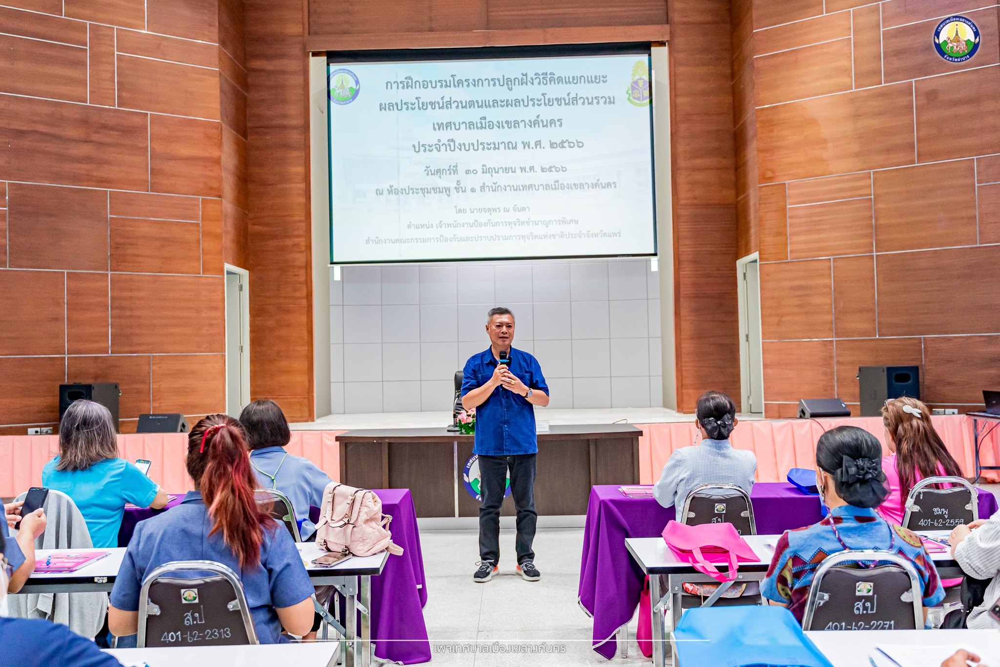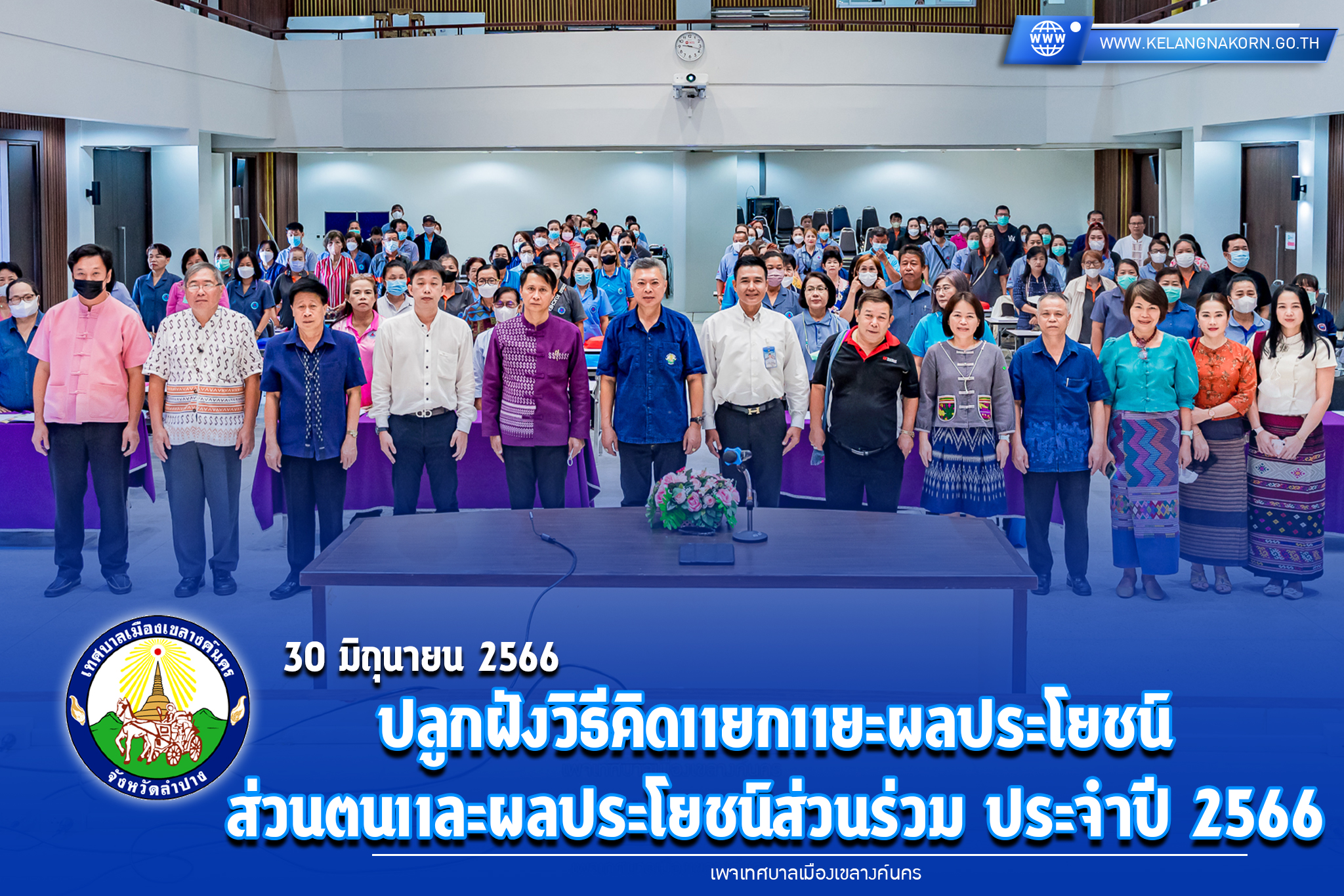 วันที่ 30 มิถุนายน 2566 เวลา 09.00 น. นายไพฑูรย์ โพธิ์ทอง นายกเทมนตรีเมืองเขลางค์นคร เป็นประธานในพิธีเปิด โครงการปลูกฝังวิธีคิดแยกแยะผลประโยชน์ส่วนตนและผลประโยชน์ส่วนร่วม ประจำปีงบประมาณ พ.ศ.2566 โดยมีคณะผู้บริหาร สมาชิกสภาเทศบาล และหัวหน้าส่วนราชการร่วมเป็นเกียรติในพิธีเปิด ซึ่งได้รับเกียรติวิทยากรจาก สำนักงานคณะกรรมการป้องกันและปราบปรามการทุจริตแห่งชาติ จังหวัดแพร่ นายจตุพร ณ จันตา เจ้าพนักงานป้องกันการทุจริตชำนาญการพิเศษ บรรยายให้ความรู่แก่ผู้เข้ารับการอบรม เรื่อง “ผลประโยชน์ส่วนตนและผลประโยชน์ส่วนรวม” และร่วมแลกเปลี่ยนความคิดเห็นและเปิดโอกาสให้ผู้เข้าร่วมอบรมได้มีส่วนร่วมในการป้องกันการทุจริตของเทศบาลเมืองเขลางค์นคร เพื่อให้การดำเนินงานมุ่งเน้นผลประโยชน์ส่วนรวมเป็นที่ตั้งต่อไป