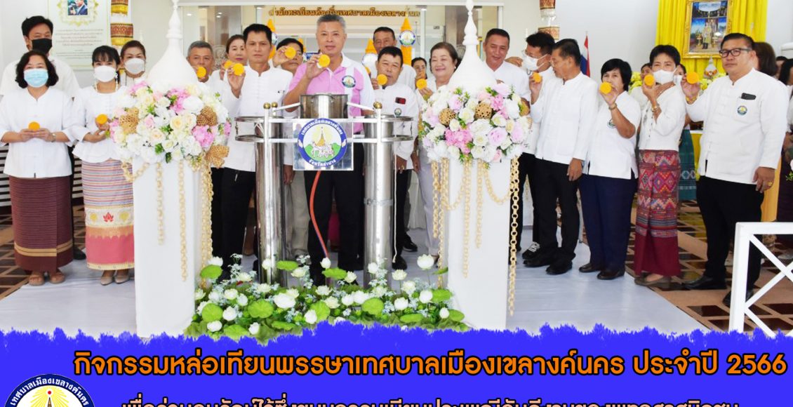 วันที่ 25 กรกฎาคม 2566 เวลา 09.00 น.นายไพฑูรย์ โพธิ์ทอง นายกเทศมนตรีเมืองเขลางค์นคร พร้อมด้วยคณะผู้บริหาร สมาชิกสภาเทศบาลฯ หัวหน้าส่วนราชการ ร่วมกิจกรรมหล่อเทียนพรรษาเทศบาลเมืองเขลางค์นคร ประจำปี 2566 ณ โถงประชาสัมพันธ์ชั้น 1 สำนักงานเทศบาลเมืองเขลางค์นคร อีกทั้งยังมีการลงนามปฏิญาณตนงดเหล้าเข้าพรรษา โดยมีประชาชนที่เดินทางมาติดต่อราชการ ณ สำนักงานเทศบาลเมืองเขลางค์นคร และจะดำเนินกิจกรรมถวายเทียนพรรษาเทศบาลเมืองเขลางค์นคร ประจำปี 2566 ในวันพุธที่ 26 กรกฎาคม 2566 โดยแยกเป็นตำบล ดังนี้