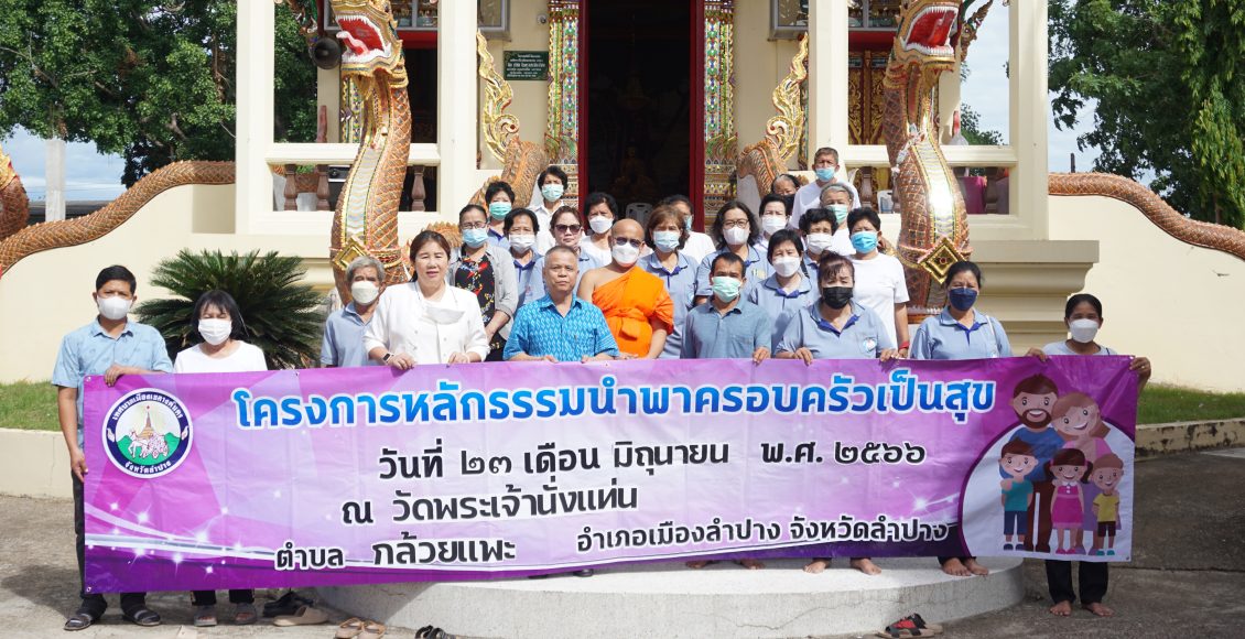 วันที่ 23 มิถุนายน 2566 เวลา 09.00 น. นายไพฑูรย์ โพธิ์ทอง นายกเทศมนตรีเมืองเขลางค์นคร มอบหมายให้ นายจตุวัฒน์ ตุ้ยเต็มวงศ์ เลขานุการนายกเทศมนตรีเมืองเขลางค์นคร เป็นประธานเปิดโครงการหลักธรรมนำพาครอบครัวเป็นสุขให้แก่ประชาชนชุมชนบ้านกล้วยม่วง ณ วัดพระเจ้านั่งแท่น ตำบลกล้วยแพะ โดยได้รับความเมตตาธรรมจากพระครูธีรวัฒน์ ติสฺสเธโว เจ้าอาวาสวัดพระเจ้านั่งแท่น เป็นวิทยากร