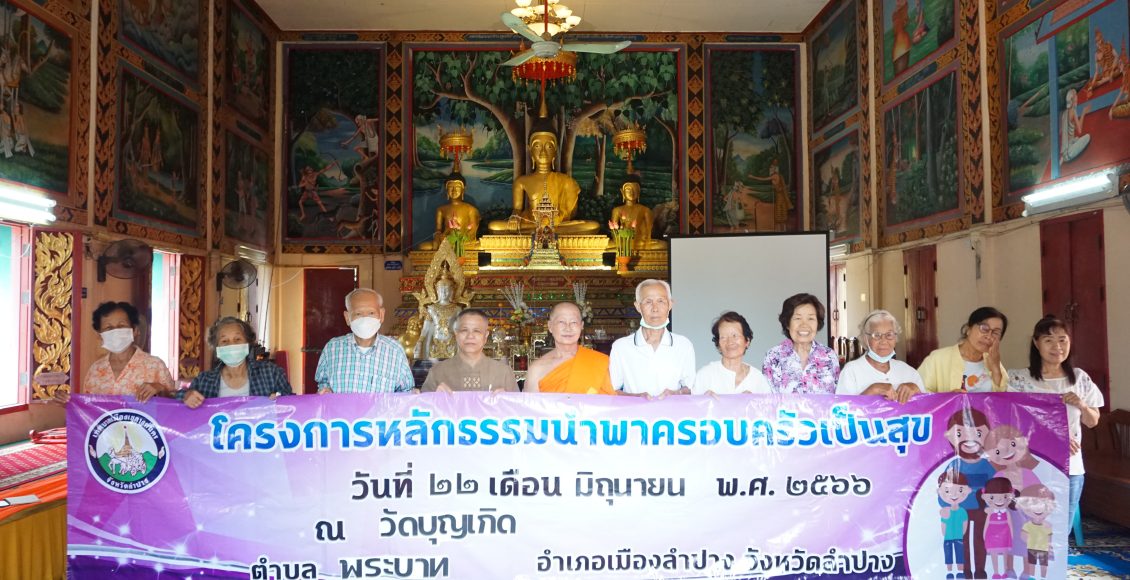 วันที่ 22 มิถุนายน 2566 เวลา 09.00 น. นายไพฑูรย์ โพธิ์ทอง นายกเทศมนตรีเมืองเขลางค์นคร มอบหมายให้ นายจตุวัฒน์ ตุ้ยเต็มวงศ์ เลขานุการนายกเทศมนตรีเมืองเขลางค์นคร เป็นประธานเปิดโครงการหลักธรรมนำพาครอบครัวเป็นสุขให้แก่ประชาชนชุมชนบ้านบุญเกิด ณ วัดบุญเกิด ตำบลพระบาท โดยได้รับความเมตตาธรรมจาก พระสุรพล ขฺนติสโห วัดพระบาท เป็นวิทยากรในการบรรยายให้ความรู้