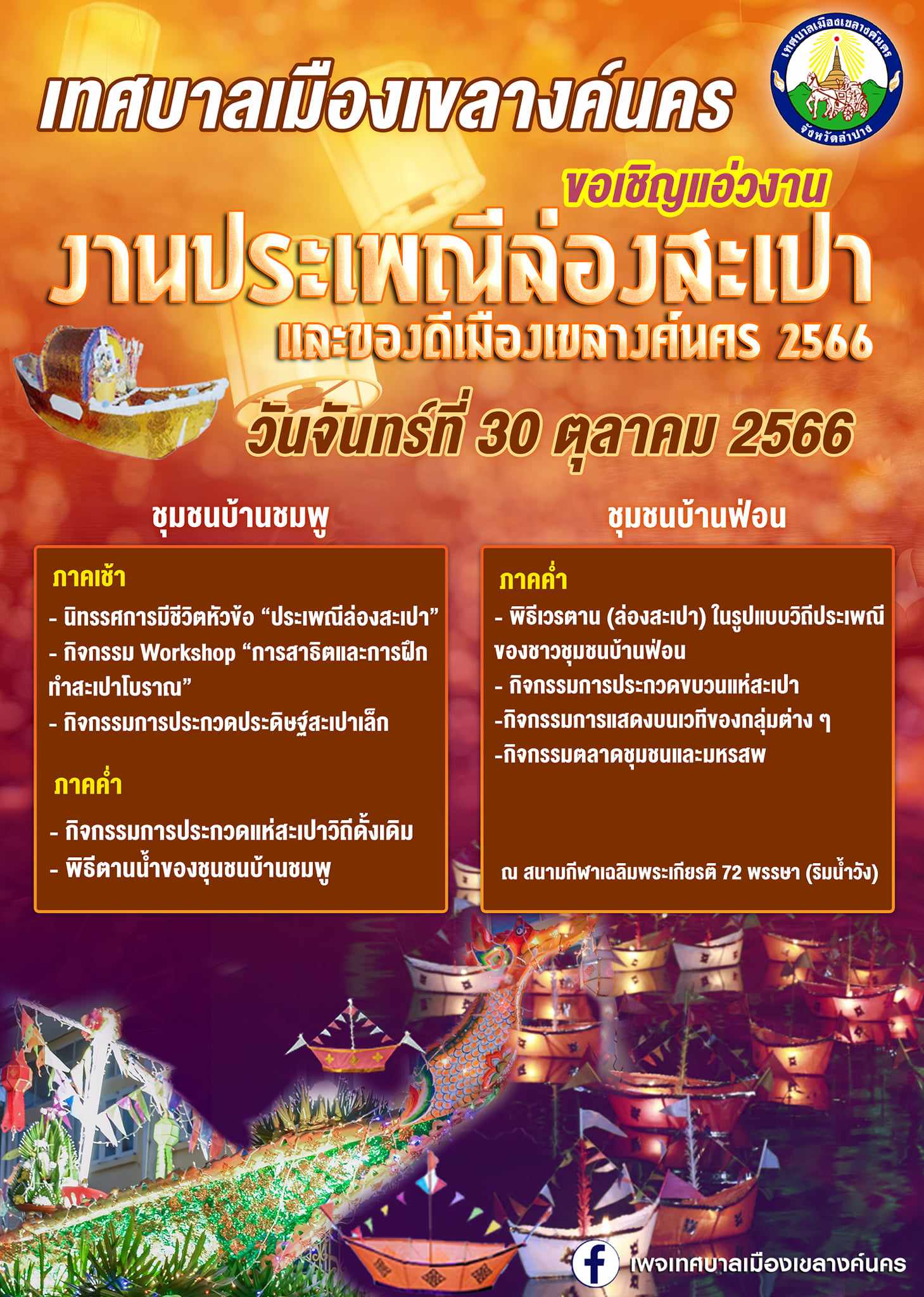 เทศบาลเมืองเขลางค์นครจัดงานประเพณี“ล่องสะเปา และของดีเมืองเขลางค์นคร ประจำปี 2566” สืบสานงานประเพณีหลังออกพรรษา 1 วัน