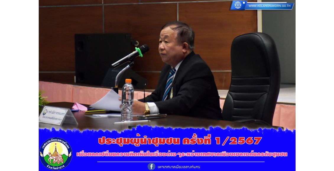 การประชุมผู้นำชุมชนในเขตเทศบาลเมืองเขลางค์นคร ครั้งที่ 1 ประจำปีงบประมาณ 2567