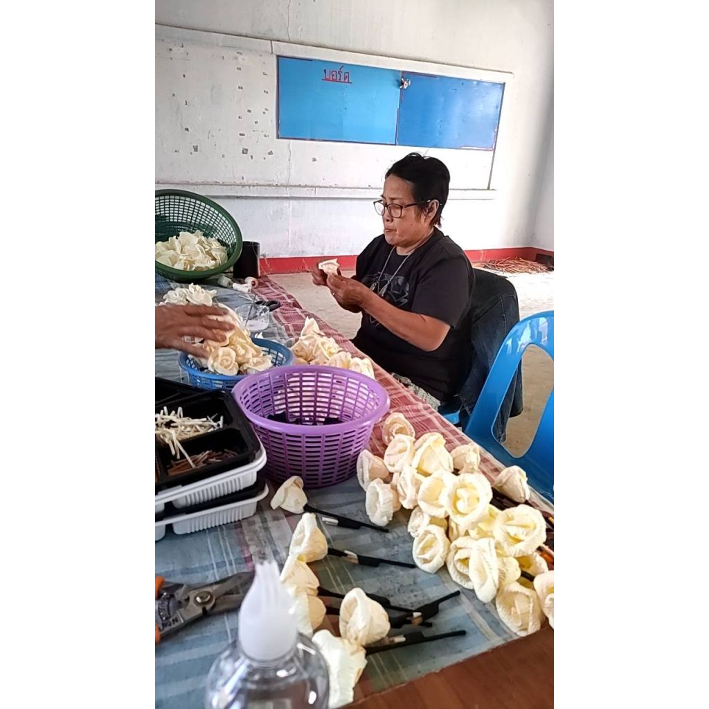 9. กลุ่มสตรีชุมชนบ้านสบตุ๋ย รวมกลุ่มประดิษฐ์ดอกไม้จันทน์เพื่อสร้างอาชีพและรายได้เข้ากลุ่มสตรี