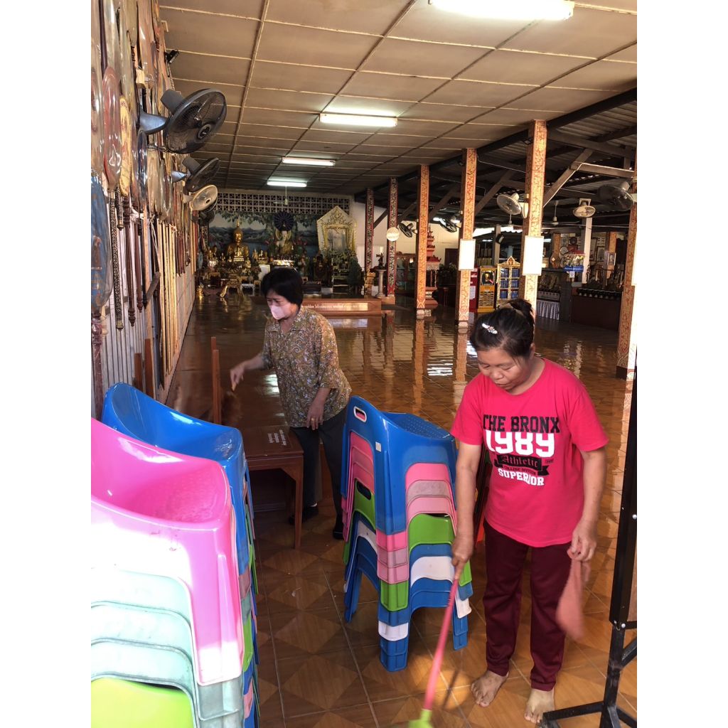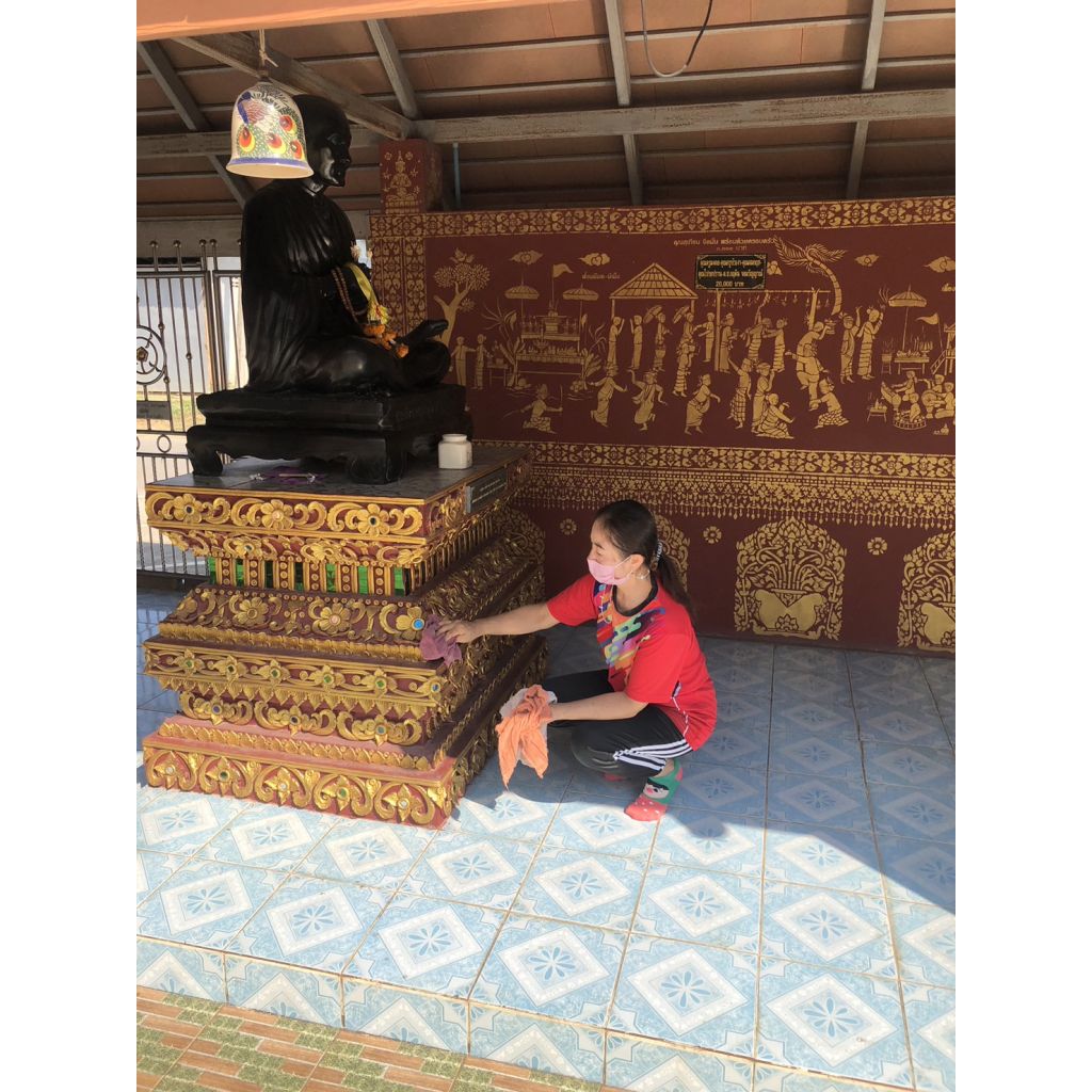 1. กลุ่มสตรีชุมชนบ้านปงแสนทอง ช่วยกันทำความสะอาดวัด