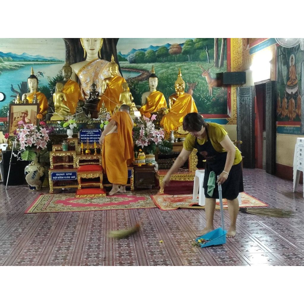 10. กลุ่มสตรีชุมชนบ้านแม่กืย ช่วยกันทำความสะอาดวัด