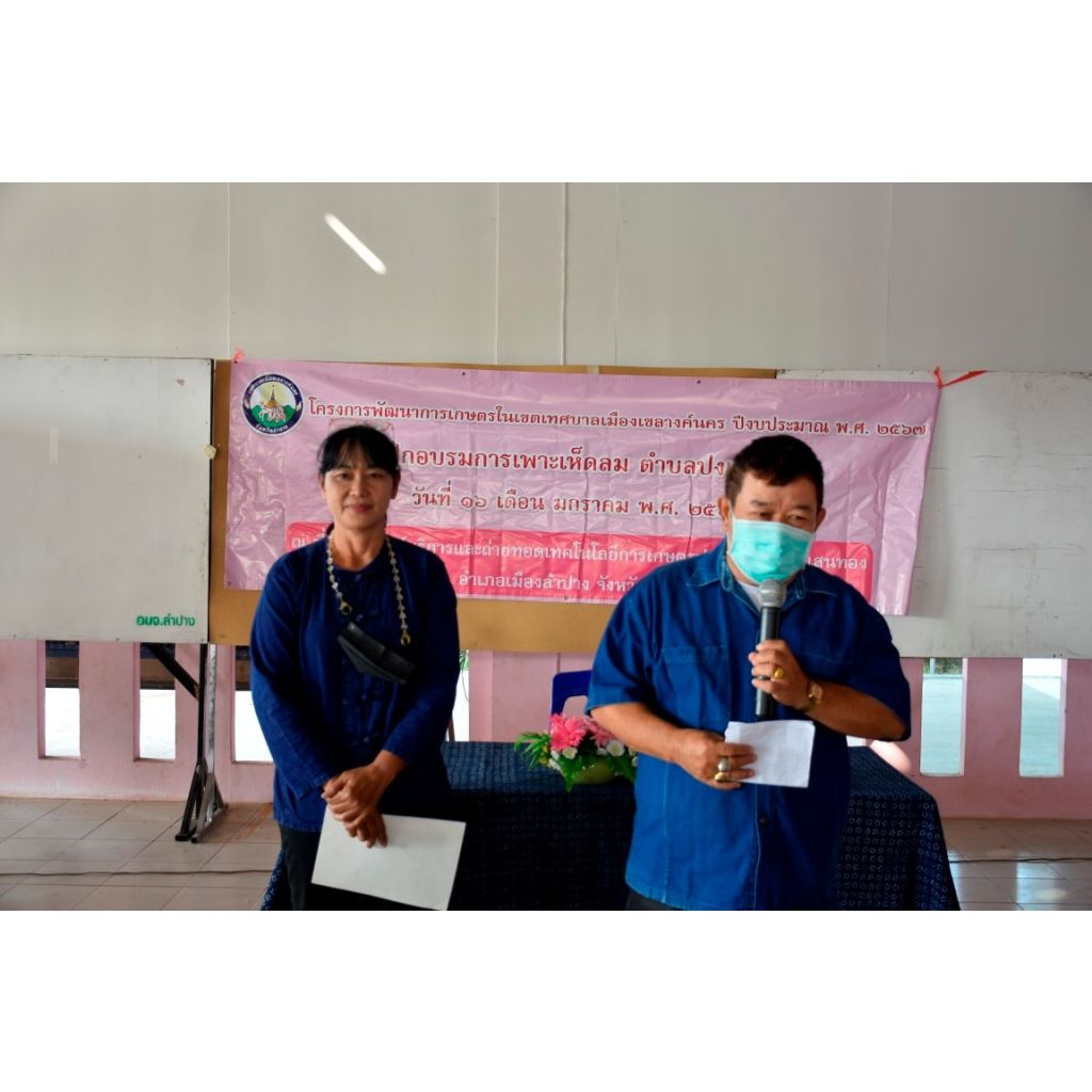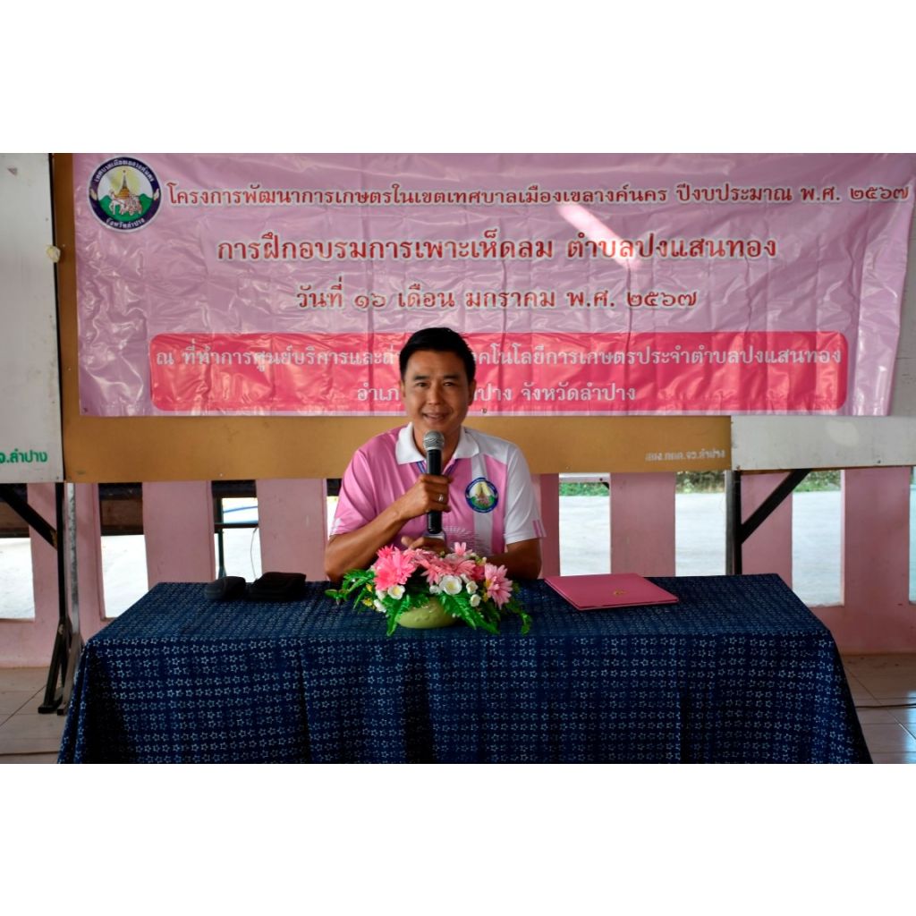 เมื่อวันที่ 16 มกราคม 2567 เวลา 09.00 น. นายไพฑูรย์ โพธิ์ทอง นายกเทศมนตรีเมืองเขลางค์นคร มอบหมายให้นายนคร โยธาวงศ์ รองนายกเทศมนตรีเมืองเขลางค์นคร เป็นประธานในพิธีเปิดการอบรมหลักสูตรเพาะเห็ดลม ตามโครงการพัฒนาการเกษตรในเขตเทศบาลเมืองเขลางค์นคร ประจำปีงบประมาณ พ.ศ.2567 โดยมีคณะผู้บริหาร ร่วมเป็นเกียรติในพีเปิด ณ ที่ทำการศูนย์บริการและถ่ายทอดเทคโนโลยีการเกษตรประจำตำบลปงแสนทอง โดยได้รับความอนุเคราะห์ทีมวิทยากร นำโดยนางนุชนาถ ชวนชิต บรรยายให้ความรู้ สาธิต และฝึกปฏิบัติการเพาะเห็ดลม เพื่อต่อยอดความรู้ให้ผู้เข้ารับการอบรม จำนวน 30 คน ได้นำไปปรับใช้ในการทำสวนครัวและเสริมสร้างรายได้ให้แก่ตนเองและครอบครัวต่อไป