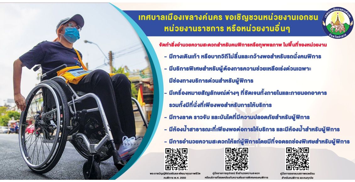 เทศบาลเมืองเขลางค์นคร ขอความร่วมมือหน่วยงานเอกชน หน่วยงานราชการ หรือหน่วยงานอื่นๆ จัดทำสิ่งอำนวยความสะดวก สำหรับคนพิการ หรือทุพพลภาพ ในพื้นที่หน่วยงาน ![]()