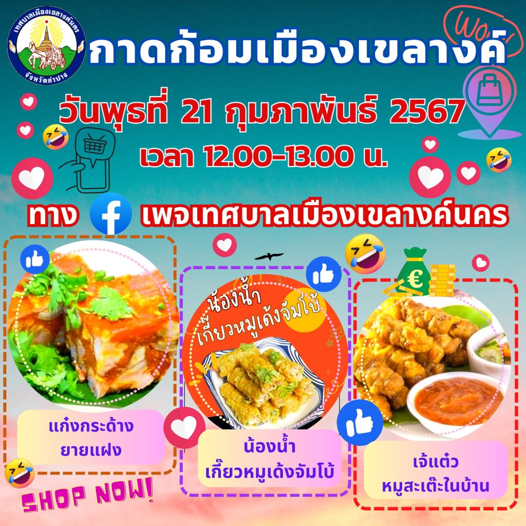 กิจกรรมการจำหน่ายสินค้าออนไลน์ผ่านทางเพจเทศบาลเมืองเขลางค์นคร (กาดก้อมเมืองเขลางค์) ประจำปีงบประมาณ 2567 เมื่อวันพุธที่ 21 กุมภาพันธ์ 2567 เวลา 12.00 น. เทศบาลเมืองเขลางค์นคร จัดกิจกรรมการส่งเสริมช่องทางการจำหน่ายสินค้าแก่กลุ่มอาชีพและผู้ประกอบการในเขตเทศบาลเมืองเขลางค์นคร โดยเป็นการจำหน่ายสินค้าออนไลน์ผ่านทางเพจเทศบาลเมืองเขลางค์นคร (กาดก้อมเมืองเขลางค์) อาทิเช่น 1.แก๋งกระด้างยายแฝง 2.เจ๊แต๋ว หมูสะเต๊ะในบ้าน 3. ร้านน้องน้ำ เกี๊ยวหมูเด้งจัมโบ้ Share FacebookTwitterGoogle+ReddItWhatsAppPinterestEmail