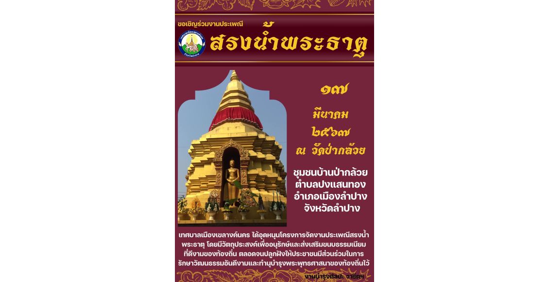 เทศบาลเมืองเขลางค์นคร ขอเชิญชวนร่วมประเพณีสรงน้ำพระธาตุของชุมชนในเขตเทศบาลเมืองเขลางค์นคร