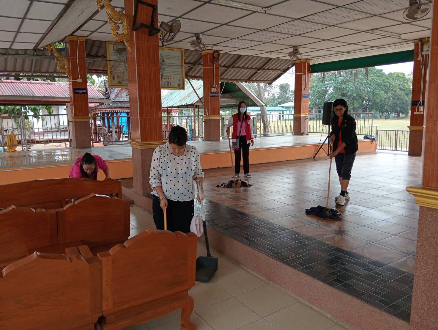 – กลุ่มสตรีช่วยกันทำความสะอาดวัด