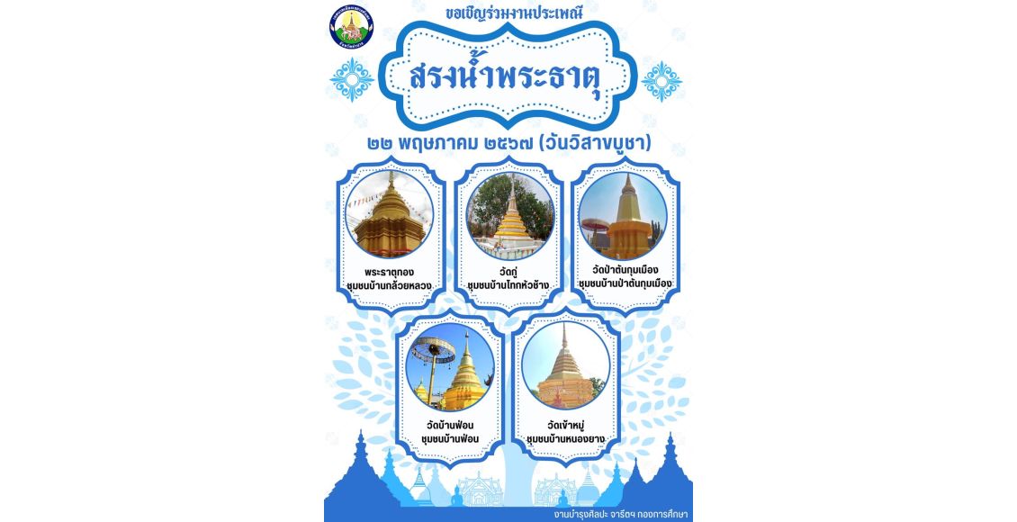 จึงขอเชิญทุกท่านร่วมเป็นเกียรติและอนุโมทนาบุญในงานประเพณีสรงน้ำพระธาตุ เพื่อร่วมอนุรักษ์ สืบสาน และส่งเสริมประเพณีวัฒนธรรมท้องถิ่นให้คงอยู่สืบไป จึงขอประชาสัมพันธ์ให้ทราบโดยทั่วกัน![🙏]()