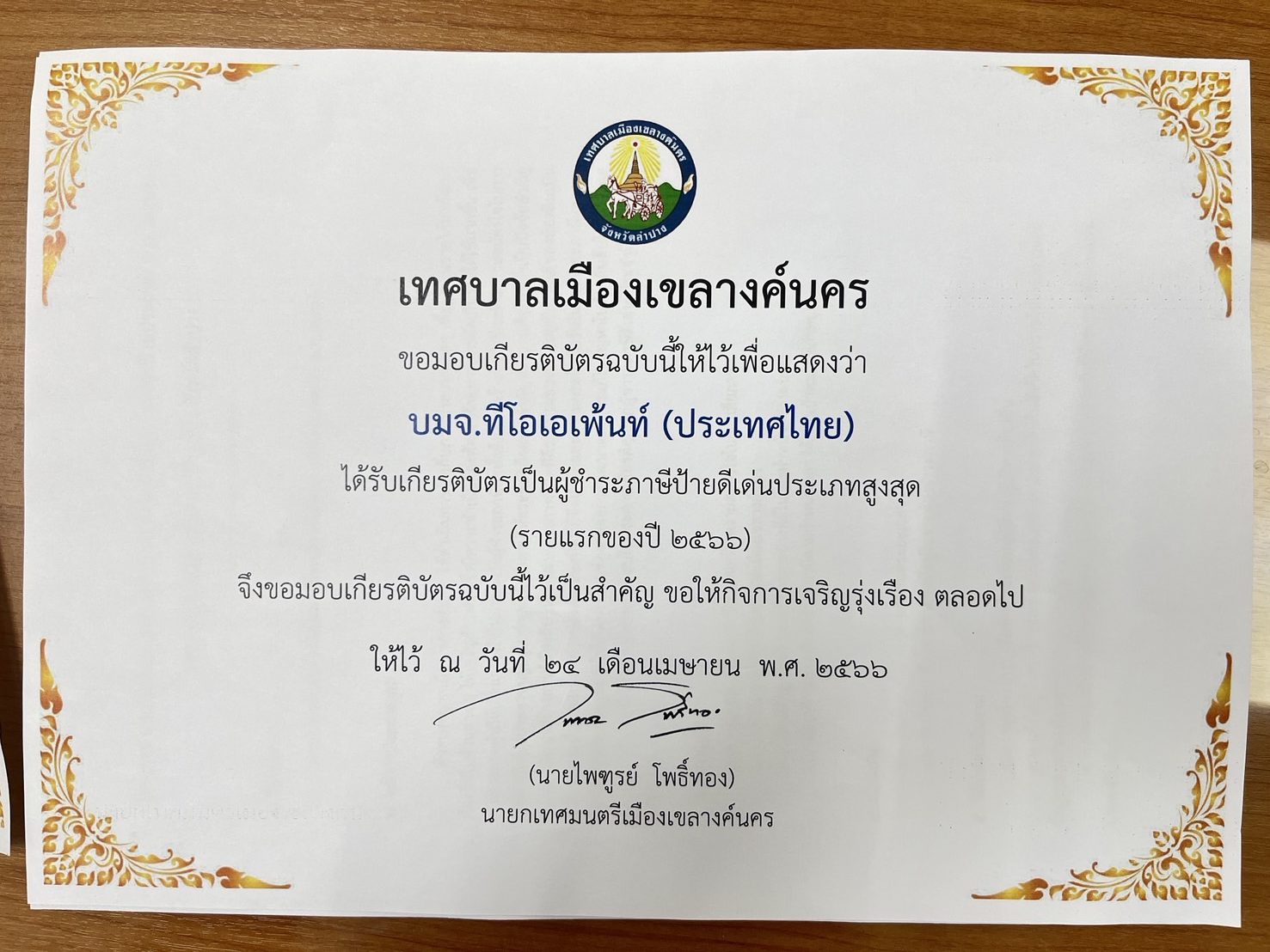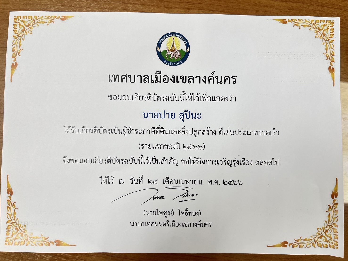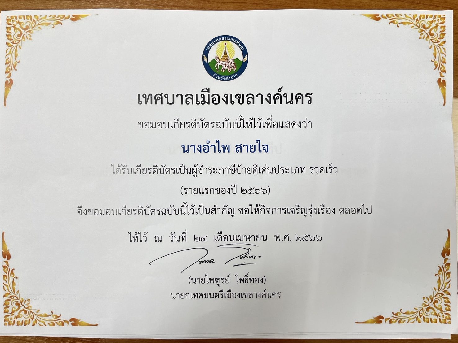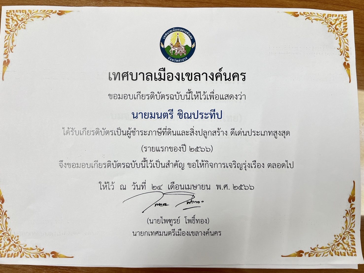 ประกาศเกียรติคุณ ผู้ชำระภาษีดีเด่น ประจำปี 2566