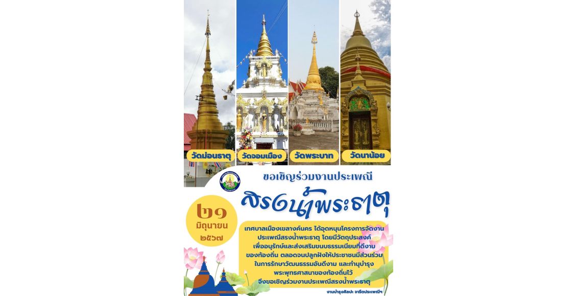 เทศบาลเมืองเขลางค์นคร ขอเชิญชวนร่วมประเพณีสรงน้ำพระธาตุของชุมชนในเขตเทศบาลเมืองเขลางค์นคร ประจำเดือนมิถุนายน 2567