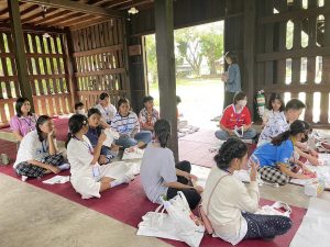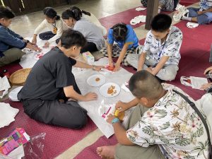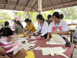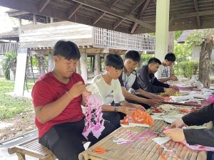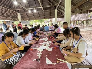 – และแบ่งกลุ่มปฏิบัติด้านศิลปวัฒนธรรม Art & Crafts Workshop เปิดประสบการณ์ “ห้องเรียนไร้กรอบ” ทำกิจกรรมทำกระเป๋าผ้า ผ่านวิธีการสเตนซิลหรือการพิมพ์ลายฉลุ กิจกรรมการประดิษฐ์ช่อของชาวล้านนา และการประดิษฐ์ตุงของชาวล้านนา