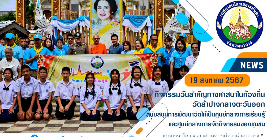 รองนายกเทศมนตรีเมืองเขลางค์นคร พร้อมด้วยสมาชิกสภาเทศบาล หัวหน้าส่วนราชการ พ.ต.อ.ภูชิชย์ ตรียัมปราย ผู้กำกับการสถานีตำรวจภูธรเขลางค์นคร ประธานคณะกรรมการชุมชน และคณะครู นักเรียนโรงเรียนบ้านชุมชนบ้านฟ่อนวิทยา ร่วมโครงการจัดกิจกรรมวันสำคัญทางศาสนาในท้องถิ่น ณ วัดลำปางกลางตะวันออก ชุมชนบ้านลำปางกลางตะวันออก ตำบลชมพู เพื่อร่วมขับเคลื่อนการดำเนินงาน