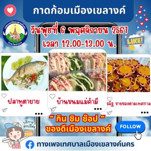 กิจกรรมการจำหน่ายสินค้าออนไลน์ผ่านทางเพจเทศบาลเมืองเขลางค์นคร (กาดก้อมเมืองเขลางค์) ประจำปีงบประมาณ 2568 วันพุธที่ 6 พฤศจิกายน 2567 เวลา 12.00 น. เทศบาลเมืองเขลางค์นคร จัดกิจกรรมการส่งเสริมช่องทางการจำหน่ายสินค้าแก่กลุ่มอาชีพและผู้ประกอบการในเขตเทศบาลเมืองเขลางค์นคร โดยเป็นการจำหน่ายสินค้าออนไลน์ผ่านทางเพจเทศบาลเมืองเขลางค์นคร (กาดก้อมเมืองเขลางค์) อาทิเช่น 1.ขนมเเม่คำมี 2. ปลาทูตายาย 3. ร้านณัฐ ขายของตามเทศกาล Share FacebookTwitterGoogle+ReddItWhatsAppPinterestEmail