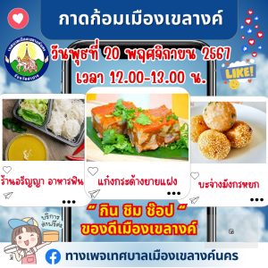 กิจกรรมการจำหน่ายสินค้าออนไลน์ผ่านทางเพจเทศบาลเมืองเขลางค์นคร (กาดก้อมเมืองเขลางค์) ประจำปีงบประมาณ 2568 เมื่อวันพุธที่ 20 พฤศจิกายน 2567 เวลา 12.00 น. เทศบาลเมืองเขลางค์นคร จัดกิจกรรมการส่งเสริมช่องทางการจำหน่ายสินค้าแก่กลุ่มอาชีพและผู้ประกอบการในเขตเทศบาลเมืองเขลางค์นคร โดยเป็นการจำหน่ายสินค้าออนไลน์ผ่านทางเพจเทศบาลเมืองเขลางค์นคร (กาดก้อมเมืองเขลางค์) อาทิเช่น 1.อรัญญาอาหารฟิน 2. บะจ่างมังกรหยก 3. ยายแฝงแกงกระด้าง Share FacebookTwitterGoogle+ReddItWhatsAppPinterestEmail