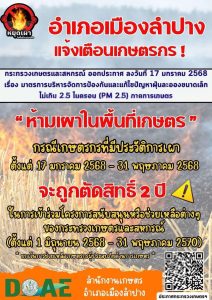วันที่ 15 มีนาคม 2568 นางสาวนุชจิรา คิดอ่าน นักวิชาการเกษตรปฏิบัติการ เผยแพร่ประชาสัมพันธ์แจ้งเรื่อง เกษตรกรลำปางรวมใจ ไม่เผา