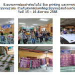 - วันที่ 15-16 สิงหาคม 68 กิจกรรมสตรีชุมชนหมอสมร่วมกับสหกรณ์เครดิตยูเนี่ยมอบรมการย้อมผ้าด้วยใบไม้ Eco primitng