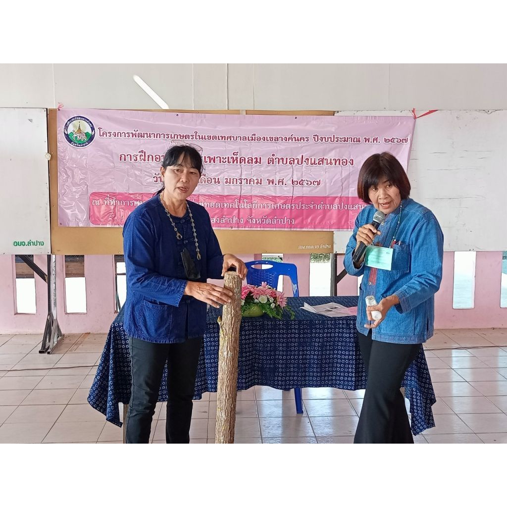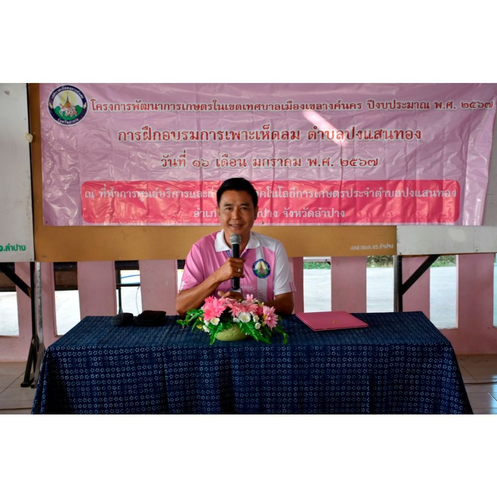 เมื่อวันที่ 22 มกราคม 2567 เวลา 09.00 น. นายไพฑูรย์ โพธิ์ทอง นายกเทศมนตรีเมืองเขลางค์นคร มอบหมายให้นายธาราเงิน จันทร์คำ รองนายกเทศมนตรีเมืองเขลางค์นคร เป็นประธานในพิธีเปิดการอบรมหลักสูตรเพาะเห็ดลม ตามโครงการพัฒนาการเกษตรในเขตเทศบาลเมืองเขลางค์นคร ประจำปีงบประมาณ พ.ศ.2567 ณ ศาลาอเนกประสงค์ชุมชนบ้านกล้วยกลาง ชุมชมบ้านกล้วยกลาง ตำบลกล้วยแพะ โดยได้รับความอนุเคราะห์ทีมวิทยากร นางนุชนาถ ชวนชิต บรรยายให้ความรู้ สาธิต และฝึกปฏิบัติการเพาะเห็ดลม เพื่อต่อยอดความรู้ให้ผู้เข้ารับการอบรม ได้นำไปปรับใช้ในการทำสวนครัวและเสริมสร้างรายได้ให้แก่ตนเองและครอบครัวต่อไป
